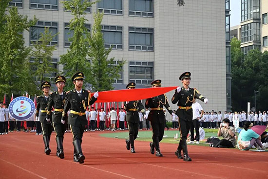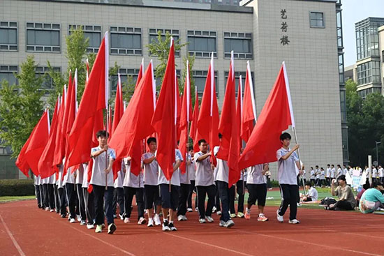伴随着雄壮的《运动员进行曲》,在国旗队、会徽队和红旗队的引领下,学院46个班级的运动方阵英姿飒爽、精神饱满地有序入场。