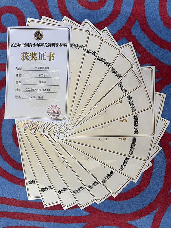 比赛中,职教富春龙的队员们齐心协力,将巨龙演绎得栩栩如生。他们的动作行云流水,或穿腾、或翻滚、或游弋,把龙的霸气威武展现得淋漓尽致。经过激烈角逐,队员们凭借出色的发挥,最终荣获甲组舞龙团体二等奖;获竞速舞龙第二名;获规定套路第三名;获自选套路第四名。这不仅是对他们个人努力的肯定,更是对学校舞龙项目教学成果的一次检验。