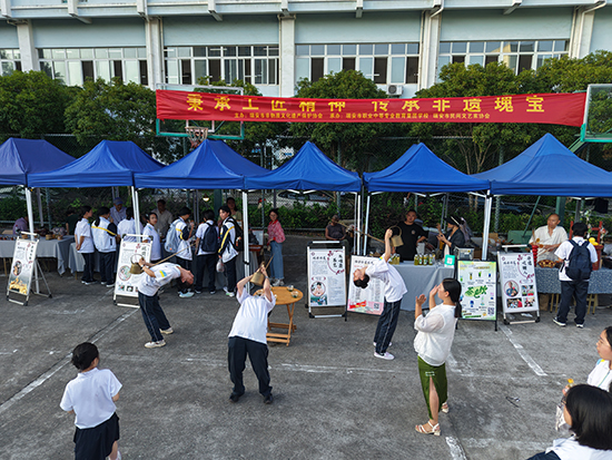 “瑞职集团校始终致力于本土传统文化的传承与创新。”负责此次活动的市民间文艺家协会副主席、锦湖社区学校常务副校长张再益介绍道,“早在十几年前,学校便率先将竹丝镶嵌、旗袍制作、温州鼓词等非遗项目引入校园,通过开设特色课程、组建兴趣社团等方式,播下了非遗传承的种子。”