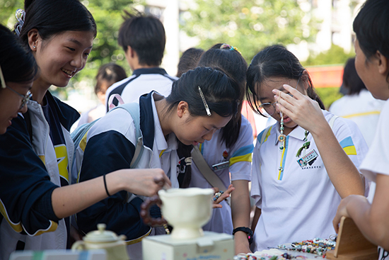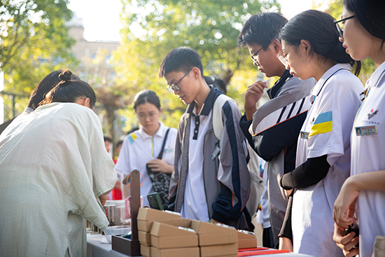“叮铃铃——”,10月10日下午3时,瑞安市职业中等专业教育集团学校(以下简称瑞职集团校)的放学铃声刚落,原本安静的校园小广场瞬间热闹起来。同学们快步汇聚于此,目光被广场两侧琳琅满目的摊位吸引——一场兼具观赏性与互动性的“民间工艺盛宴”暨非遗文化进校园活动正拉开帷幕,用指尖上的技艺为师生们带来沉浸式文化体验。