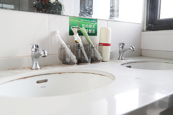 在他们的巧手下,凌乱的生活用品归位有序,被码成整整齐齐的“小方阵”,松软的被子棱角渐显,被捏成四四方方的 “豆腐块”,从桌面到床铺,每一处细节都在指尖的打磨下焕新,内务整理工作初显成效。