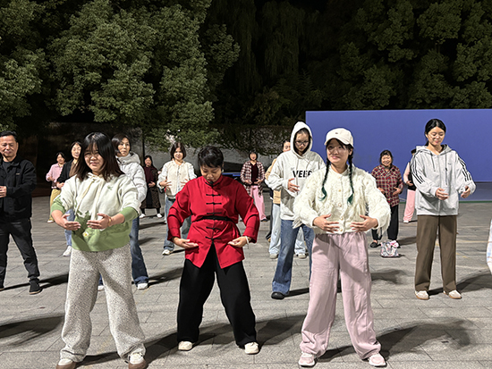 为进一步丰富辖区居民精神文化生活,推广科学健康的养生方式,10月20日晚,湖州市埭溪镇成人文化技术学校开办的八段锦培训班在学校健身广场顺利开班。本次培训特邀沈水妹老师进行授课,吸引了数十名健身爱好者踊跃参与。大家在一招一式的练习中感受传统养生文化的魅力,共同开启健康生活新体验。从银发老人到职场青年,从田间劳作的农民到返乡创业的新农人,八段锦正以独特的文化魅力与健身实效,为乡村振兴注入“健康动能”。