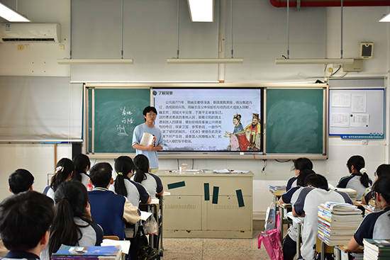 座谈会上,学校党总支副书记、校长邱雨馨就学校综合高中办学情况作系统汇报,从班级规模、师资建设、教学模式等方面介绍了办学基本概况,并结合上学期期末统考与学考成绩,详细阐述了为提升教学质量所实施的五项核心举措,包括深化校际教研协同、完善学生分流机制、健全教学评价体系等。