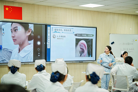 在这一背景下,罗丹老师精心设计并推出了《仁心仁术,养护健康——耳穴压豆技术》公开课。“我们的学生已具备一定的专业基础、临床操作能力以及初步的中医护理思维。在此基础上,我们与时俱进,推动中西医护理知识的融合创新,为护理实践注入更多元、更贴近群众健康需求的技术力量。”罗老师说。