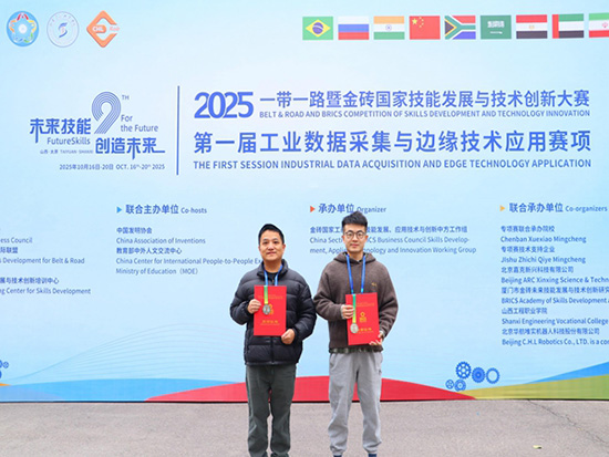 近日,在2025一带一路暨金砖国家技能发展与技术创新大赛——第一届“工业数据采集与边缘技术应用”赛项(教师组)中,海盐职业教育中心何晨阳、张忠杰教师团队凭借出色的专业能力和稳定的现场发挥,荣获全国二等奖的优异成绩!