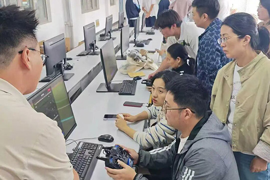 活动现场,学生们化身“准飞手”,在专业指导下先通过模拟飞行熟悉操控逻辑,再转战室内外实飞场地:室内练稳悬停精度,室外练飞行流畅度,还重点攻克了环绕目标、跟随移动对象等实用飞行手法,不少同学眼神专注地操控摇杆,脸上满是探索的热情。另一边,教师团队则聚焦“能教善导”,从无人机零部件识别到整机拆装,从常见故障排查到精准检修,每一个步骤都反复实操演练,为后续课堂教学储备扎实的实操经验。