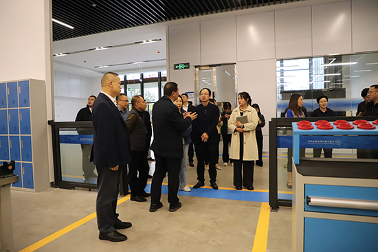 在张武剑校长和徐湖川副校长的陪同下,钱连波主任、杨林生副校长一行实地参观了学校四大专业群的已建实训基地,高标准的设施建设、贴近真实生产场景的教学环境,得到了大家的充分肯定与高度评价。