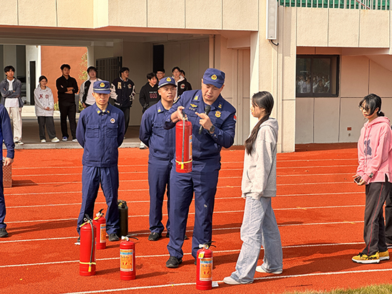 疏散环节结束后,消防专家现场教学环节接踵而至。海宁市消防救援大队胡升辉队长与尖山专职消防队白效林队长,分别结合近年来发生的典型校园火灾案例,向师生们系统讲解了日常学习生活中的消防安全知识、常见火灾隐患的排查与防范、以及火场自救互救的关键措施。理论讲解深入浅出,警示性强。随后,在消防队员的指导下,师生代表踊跃参与了灭火器、消防水带等常用消防器材的操作体验和油盆灭火实操演练。通过“零距离”接触和亲身实践,师生们有效掌握了扑救初期火灾的基本技能和应急救援处置要领,对消防安全有了更为直观和深刻的理解。