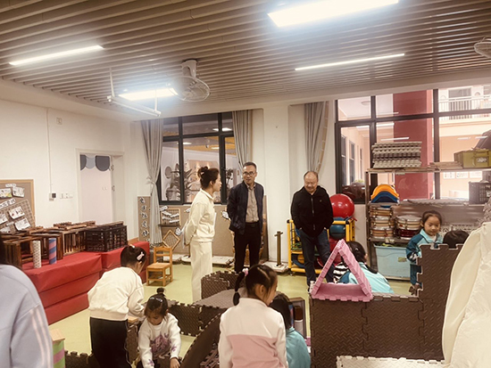 调研团队实地察看了幼儿园环境创设、园舍装饰及区域角设置情况。经前期改造升级,园舍面貌焕然一新,整洁清幽的环境中,活动区、功能区、种植区与游戏区规划规范有序。操场上,充满童趣的玩具设施适配幼儿活动需求,食堂二楼专门规划的雨天活动区域,实现了幼儿全天候室外活动的保障。教室内,区域角、观察区、休息区等功能分区布局合理,独立卫生间与洗漱区配套齐全,幼儿们礼貌热情的问候赢得调研人员一致称赞。