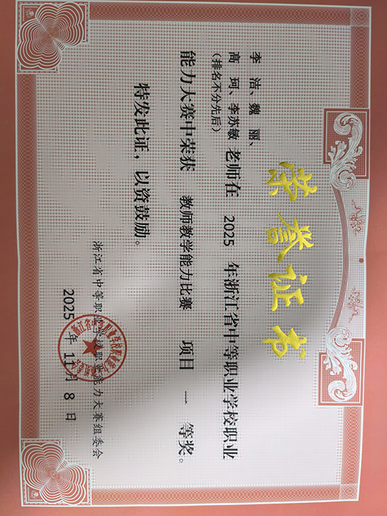 从“一枝独秀”到“春色满园”,柯桥区职业教育中心已在这项赛事中累计斩获7个一等奖。面向未来,学校将启动“金课沃土”计划:每年投入300万元专项经费,重点建设20门“可学、可赛、可孵”的模块化课程,力争三年内孵化出3个国家级教学创新团队,让省赛金牌成为教师成长的新起点,而非终点。