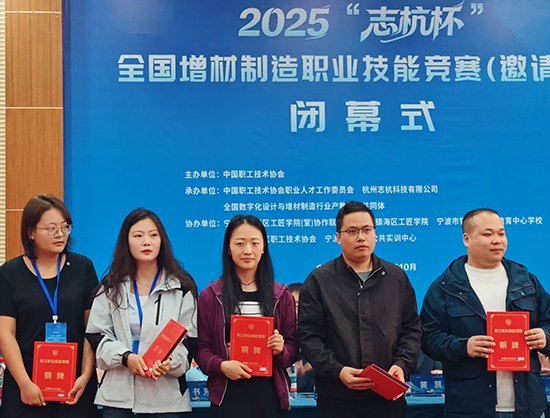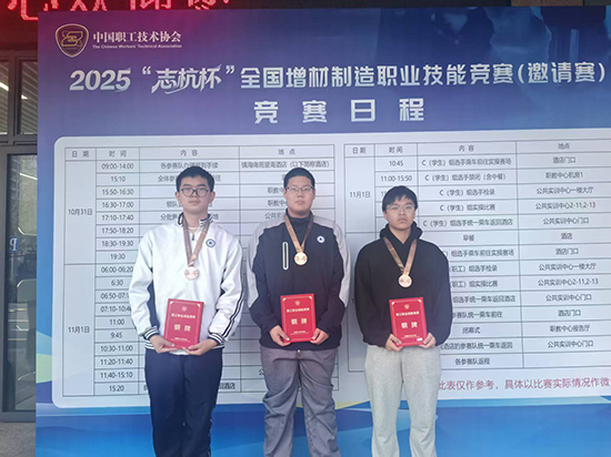 在2025年“志杭杯”全国增材制造职业技能竞赛中,湖州技师学院邹良香、闻祎婷两位老师分获教师组二等奖、三等奖,由他们指导的两名学生张凯峰、赵磊分获学生组二等奖、三等奖,他们用实力展现了技工教育师生的青春活力与技能风采。职业中专谢昀哲、黄知涵、陈宇哲3名学生参赛,在指导教师施国扣、张昱平、王颖斌的精心指导下,均获三等奖,获奖率100%,展现出良好的专业技能与综合素养,充分彰显学校智能制造领域的教学实力和办学水平。