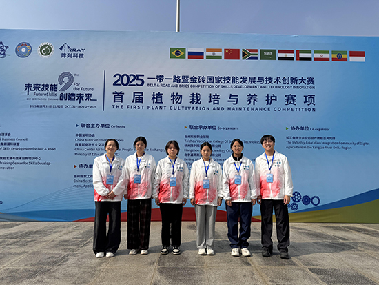 在2025一带一路暨金砖国家技能发展与技术创新大赛首届植物栽培与养护赛项中,德清职业中专沈聪、张丽巍两位老师分获教师组二等奖、三等奖,由他们指导的两支学生团队(徐诗欣、徐欣蓝;罗仁灿、谢馨绮)也双双荣获三等奖,实现100%获奖率,充分体现学校园林专业“教赛融合、以赛促教”的育人成效。