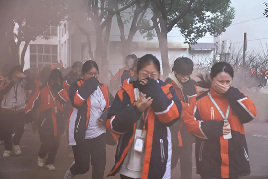 在各个路口和楼梯转角,执勤老师们反复提醒学生“捂住口鼻、压低身体”,规范的指导语此起彼伏。学生们沉着冷静,按照预定路线快速向操场集结,整个过程忙而不乱,紧张有序。