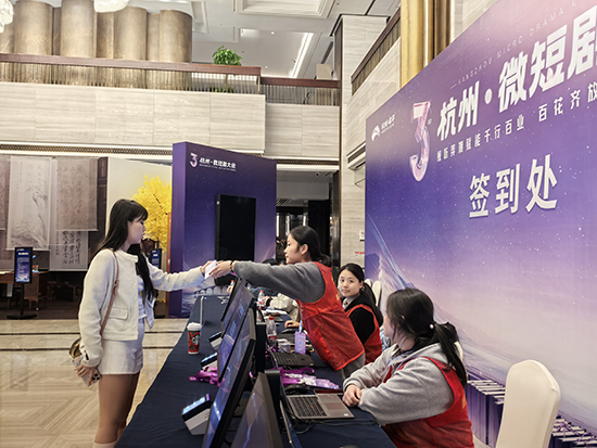 11月10日至11日,由浙江省文化广电和旅游厅、中共杭州市委宣传部联合主办,浙江省网络视听协会、杭州市文化广电旅游局、临平区人民政府共同承办的第三届杭州微短剧大会在临平隆重启幕。这场聚焦微短剧产业发展的行业盛会,不仅汇聚了业界精英与创意力量,更因一群青春身影的加入而增添了活力。一群来自浙江开放大学临平学院的大学生志愿者们,用专业的服务为大会添彩,成为会场中一道亮眼的青春风景线。