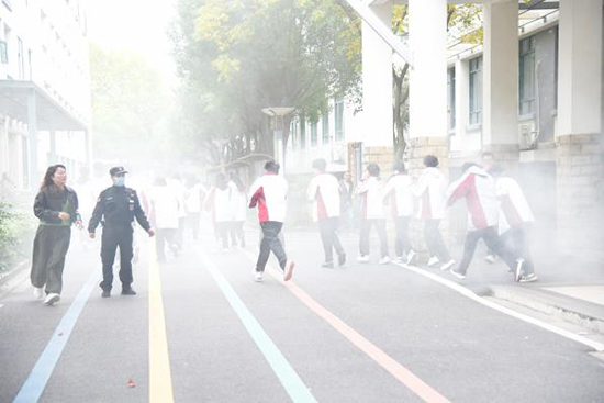 上午9时35分,随着消防警报响起,演练正式启动。各教学楼内师生迅速响应,在班主任和疏散引导员的指挥下,用湿毛巾捂住口鼻,弯腰低姿,严格按照预定路线有序撤离。整个过程紧张而不慌乱,仅用时3分09秒,全体师生已全部安全疏散至操场指定区域,并完成人员清点与汇报,展现了高效的协同机制和应急处置能力。