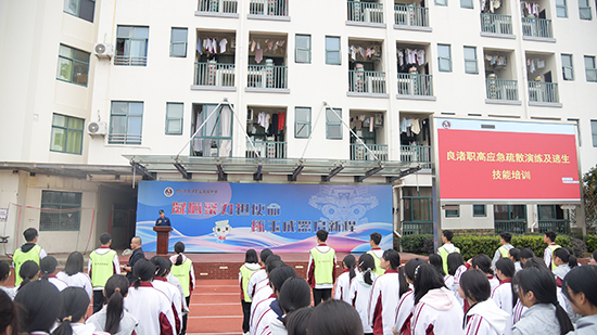 11月12日上午大课间,杭州市良渚职业高级中学组织开展了年度消防安全应急疏散演练及技能培训活动。活动旨在进一步增强师生消防安全意识,提升应对突发事件的应急自救能力,筑牢校园安全防线。