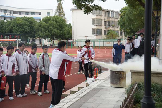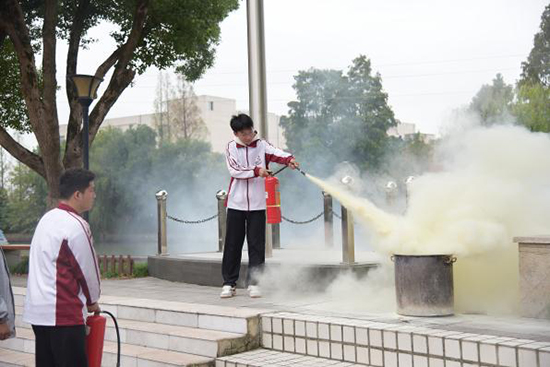 演练结束后,学校特邀消防站黄富奇班长为高一年级学生开展了消防安全专项培训。黄班长结合校园典型火灾案例,生动讲解了火灾预防、扑救初起火灾及火场逃生的基本知识,并重点演示了灭火器的正确操作方法,通过“提、拔、握、压”四字口诀帮助学生掌握使用要领。在随后的实操环节中,同学们分批次上场,在专业指导下成功扑灭模拟火点,亲身体验了灭火过程,有效提升了应对火灾的实战信心与能力。