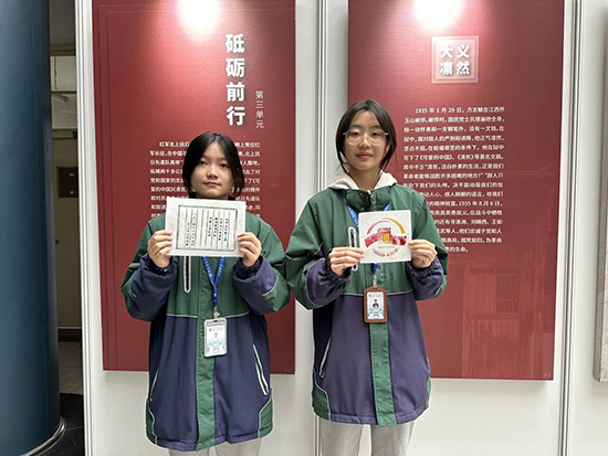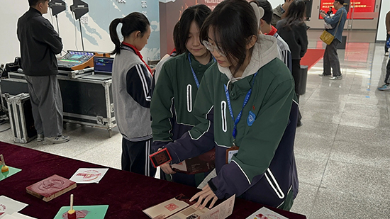 活动现场,学生还亲手体验了“铁骨铮铮”活字印刷、“征途印记”雕版印刷等互动项目。这种沉浸体验式的活动引发了团员学生深刻地思考与感悟。电商231班沈嘉怡同学动情地分享道:“在湖师院这场巡展里,我看见北上抗日先遣队以孤旅赴绝境、用热血种星火——他们把“救亡”刻进骨血,才让《可爱的中国》的温度传到今天。我们捧着这束光,更该把这份赤诚,走成脚下的路。”