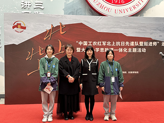 11月12日,为纪念抗日战争胜利80周年,赓续红色血脉,传承奋斗精神,学校党委委员、副校长陆婷带领师生代表参加了“北上·北上!中国工农红军北上抗日先遣队暨挺进师”特展湖州师范学院站开幕式暨大中小学思政一体化主题活动。本次活动通过特展参观、仪式教育、宣讲讲解等形式,重温革命先辈的峥嵘岁月,引导师生深刻理解历史,汲取奋进力量。