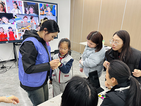 实操环节将课程推向高潮。学员们两人一组,手持专业彩绘笔和人体彩绘颜料,在手背上认真练习。韩佳音穿梭于课桌间,手把手指导笔触力度与配色技巧:“画花瓣要轻点提笔,画动物纹理要控制线条粗细。”一位学员在绘制蝴蝶图案时遇到困难,她在旁耐心示范,通过“先定轮廓后填色”的方法帮助学员快速掌握要领。教室里欢声笑语不断,有的学员专注地勾勒藤蔓枝叶,有的尝试将生肖元素融入设计,学习热情洋溢在每一个角落。
