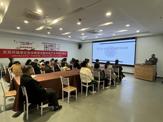 与此同时,“现代企业员工素养提升培训”与“天荒坪镇景区安全教育及服务能力水平提升培训” 同步推进。企业员工素养培训聚焦职业礼仪、团队协作、创新管理等核心要点,助力企业打造高素质人才队伍;景区安全教育及服务能力培训则针对景区运营场景,从安全风险防控、游客服务标准、突发事件应对等方面展开,全面提升景区服务质量与安全保障能力,为游客营造安全、优质的旅游体验。