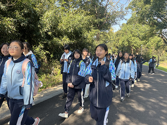 本次徒步全程约6公里,途经湖滨公园、圆融广场、钱湖秘境、下水湿地公园等多个景点,融合了东钱湖的自然生态与历史文化资源。“通过这场行走的课堂,学生们不仅在体能与意志的磨砺中提升了坚韧品格,更在小导游的娓娓讲述中,沉浸式地追寻范蠡的经世智慧、王安石的治郡理念与史氏家族的家国情怀,在行走中触摸历史脉搏,解码东钱湖文脉深处所蕴藏的先贤哲思与民本情怀。”副校长林学伟表示。