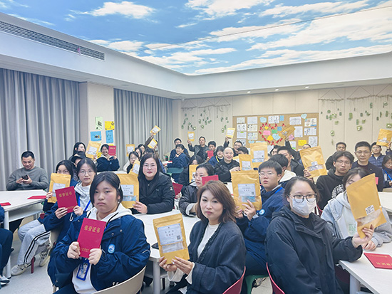 课堂的尾声,满是甜甜的仪式感与暖暖的温情。学校为孩子们郑重颁发“和谐家庭・情绪管理小能手”荣誉证书,还为每个家庭送上定制款“中医安神养生饮品礼包”,让健康与温情一起,悄悄住进千家万户,也为这段亲子共学的美好时光,画上了圆满又温柔的句号。