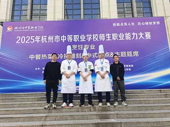 金秋时节,硕果飘香;赛场竞技,捷报频传!近日,2025年杭州市中等职业学校师生职业能力大赛(烹饪、旅服专业)圆满落幕。杭州市良渚职业高级中学旅烹专业师生凭借扎实的专业技能、出色的应变能力和默契的团队协作,在激烈角逐中脱颖而出,共揽获2金5银3铜的亮眼佳绩,为学校赢得了荣誉!