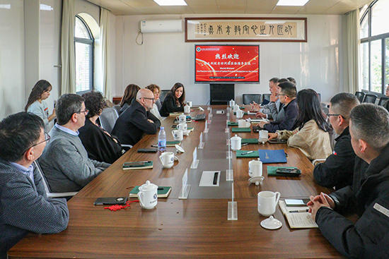 座谈交流环节,中意双方围绕职业教育发展、人才培养模式、校际合作可能等话题展开深度探讨,思想的碰撞中凝聚合作共识。张金熙校长首先代表学校作办学情况介绍。他围绕学校“三校区一基地”的办学格局、9大特色专业布局展开阐述,重点分享了学校“中高融通、产教融合、创新创业”三线并进的办学路径与“技能 + 素养”两翼齐飞的人才培养模式。从机械制造技术入选浙江省中高职一体化改革试点项目,到高星级饭店运营与管理专业的师资优势、技能大赛佳绩;从高职单独考试100%录取率,到毕业生逆袭考入国内名校的育人成果;从“政校行企”四方联动的产教生态,到新校区建设的规划蓝图,全面展现了龙湾职教集团的办学实力与发展潜力。