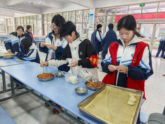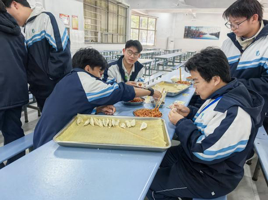 活动最温馨的环节当属“包福饺”了。同学们围坐在一起,亲手包起了饺子:熟练的同学大显身手,动作一气呵成;初次尝试的同学虽然动作生疏,但却专注仔细、别出心裁。在食堂阿姨的协助下,同学们亲手包制的饺子热气腾腾地出锅了,大家在欢声笑语中分享着劳动的成果,感受这最暖人心的人间烟火,不时还有同学打趣道:“这是谁包的饺子,这么奇形怪状!”至此,这场精彩纷呈的游园会画上了一个温暖而圆满的句号。