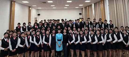 在互动环节,同学们围绕“如何提升学业水平”“高压环境下的情绪管理”“民航业发展趋势”等问题踊跃提问。徐雨桐耐心解答,并鼓励学弟学妹在校期间扎实专业基础、强化英语应用与应急处置能力,同时注重综合素质培养,以积极心态迎接未来挑战。她表示,母校的培养是她职业道路上的坚实基石,希望以此次分享为契机,为母校人才培养贡献一份力量,也期待更多学子未来成长为航空服务领域的中坚力量。