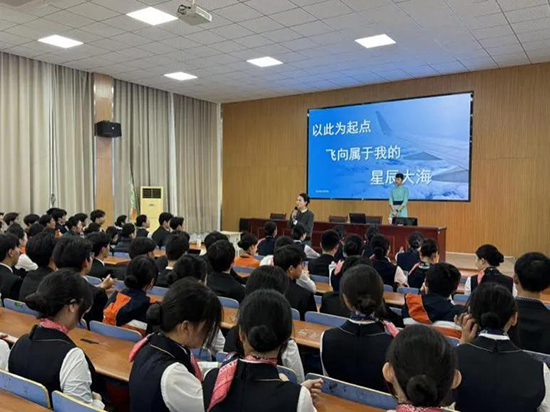 11月19日,以“以此为起点,启航空新程”为主题的认识实习专题讲座在浙江省湖州艺术与设计学校举行。本次讲座特邀2018级航空服务专业优秀毕业生徐雨桐重返母校,与90余位航空专业的学弟学妹分享心得。学校航空服务专业负责人郑凯丽教师主持并致欢迎词。