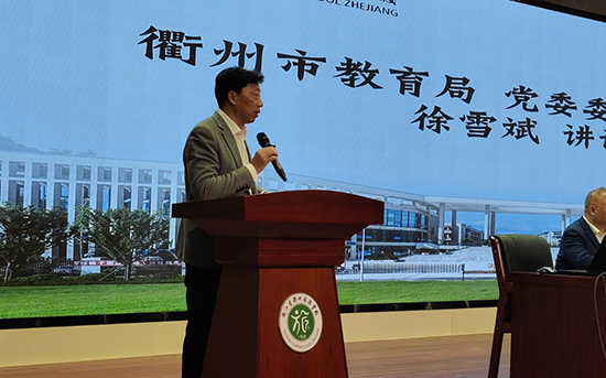 衢州市教育局党委委员、总督学徐雪斌的发言围绕衢州职业教育的特色与发展展开,重点阐述了其在资源统筹、产教融合等方面取得的成果。他希望本次活动的成功举办能成为新起点,为衢州中职教育“提质培优”开拓新局面。