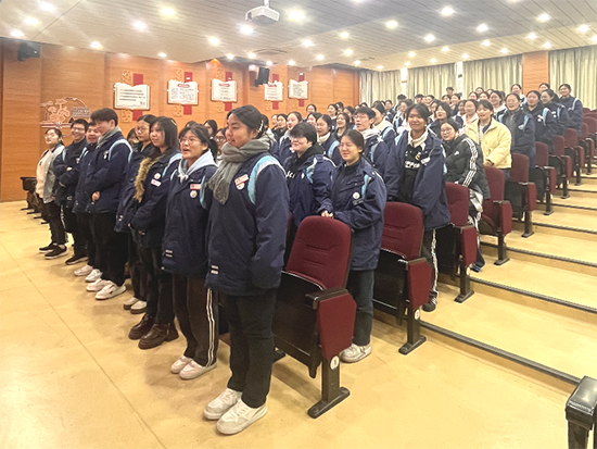 郭江河主任从实战角度出发,强调“心态决定成败,细节成就辉煌”。他提醒同学们:考前适度放松,调整状态;考中专注流程,注重礼仪,规范操作。 每一个环节都可能是加分项,每一份细心都是通往成功的阶梯。这些贴心的“备考锦囊”,既是方法指引,更是温暖的“定心丸”。随后郭主任带领全场学生集体宣誓:“拿高分,包的!” 声如洪钟,气势如虹,将整场仪式推向高潮。
