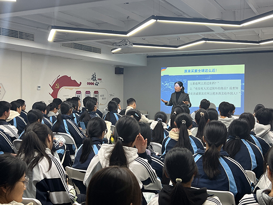 王老师结合行业前沿案例,详细解析了跨境电商的发展趋势、核心岗位及能力需求,更针对中职学子的成长特点,鼓励大家“不要因中职生的身份妄自菲薄,明确目标、深耕技能、多练多做,同样能在职业舞台上崭露头角”。亲切的话语与实用的建议,让同学们备受鼓舞。