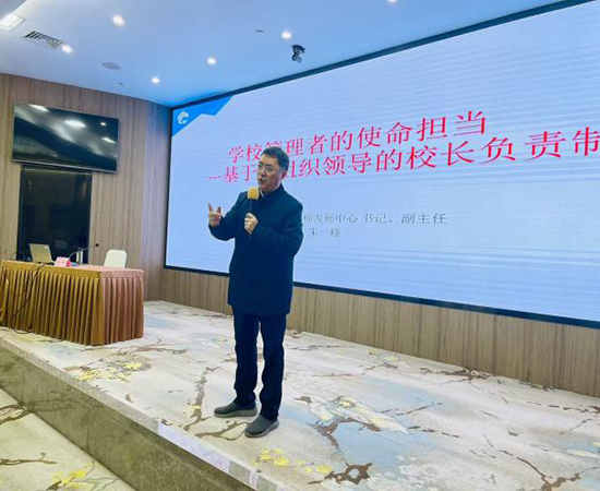 南京市秦淮区教师发展中心党总支书记朱一峰以《学校管理者的使命担当》为题,结合自身丰富的管理经验,以风趣幽默的案例,深刻阐释了在党组织领导的校长负责制下,书记应具备的“党性强、懂教育、会管理、有威信、善于做思想政治工作”等核心素质,引发了广泛共鸣。