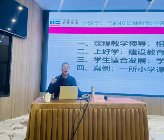 江苏省特级教师、原南京市天正小学教育集团总校长王九红围绕《“上好学”:当前校长课程教学领导的新追求》主题,以其长期深耕的“适合的教育”研究为基础,用朴实的语言和生动的课改案例,阐述了“学生适合发展”的课改目标与校长的教学领导责任,为党建工作如何引领教学中心工作提供了宝贵思路。