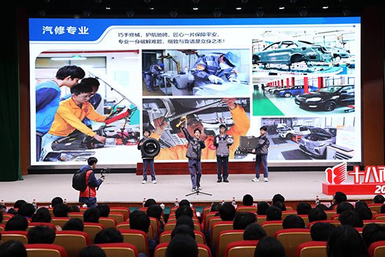 三位优秀学生代表随后陆续登台分享成长故事。“技能之星”李志程在实训车间精益求精,以专注打磨专业本领;“学习之星”张飘洋在书山学海中步履不停,用坚持书写求知之路;“双创之星”陈瑞博敢想敢试,将奇思妙想转化为实实在在的实践成果。他们的成长轨迹,正是职教中心青春学子“技能成才、强国有我”的生动诠释。