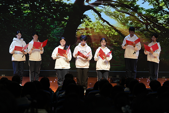 语言文字工作室的同学们以诗为媒,带来诗歌朗诵《青春万岁》,用深情朗诵诉说着对父母的感恩、对老师的敬意。