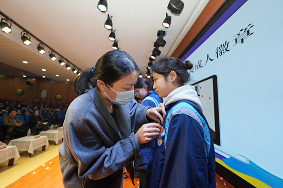 佩戴好成人徽章,整理好衣冠,学子们昂首挺胸,迈过象征独立与担当的 “成人门”。这道门,隔开了稚气与青涩,通向了责任与未来。