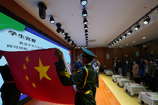 随着国歌庄严奏响,全体人员肃立合唱,歌声里承载着对祖国的赤诚,为这场成人仪式奠定了厚重而庄严的基调。