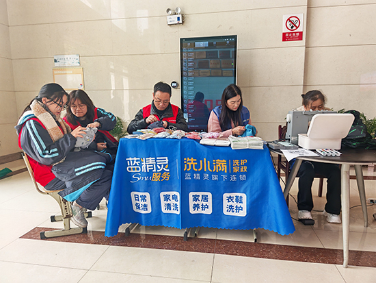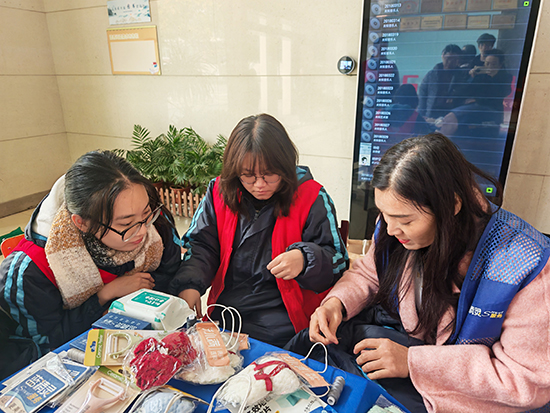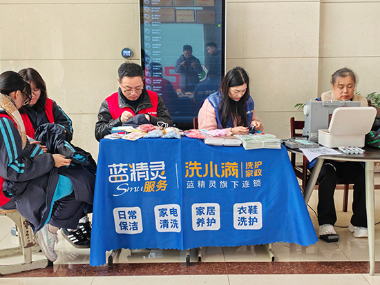 活动当日,服务站前师生络绎不绝。服装设计与工艺专业的学生在校企双师的共同指导下飞针走线,让一道道裂口悄然“愈合”,尽显扎实的技能功底;艺术设计与制作专业的学生全程跟进现场视觉维护,运用色彩与构图,传递冬日里的小温暖;还有贴心准备的小礼品,承载着心意与温度,被送到师生手中。