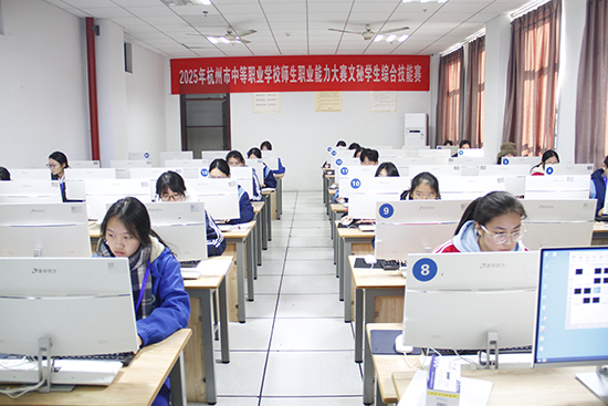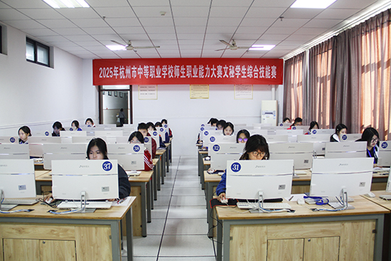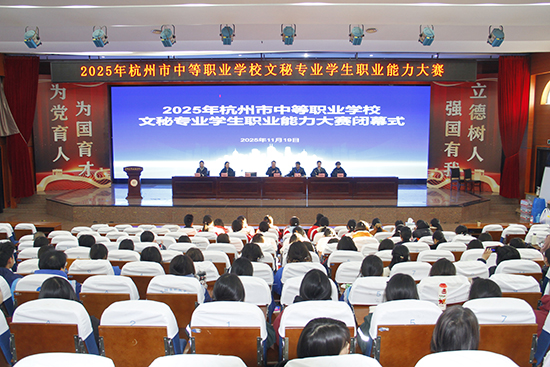 2025年11月19日,由杭州市教育局和杭州市人力资源和社会保障局联合主办、杭州市教育科学研究院、杭州市富阳区职业教育中心承办的杭州市中等职业学校文秘专业学生职业能力大赛在秋日暖阳中圆满落下帷幕。这场为期一天的专业赛事,汇聚了全市8所中职学校的48位文秘专业学子,他们在一系列贴近实际工作的竞赛项目中展开激烈角逐,充分展现了现代文秘人才的过硬技能和综合素养。本次竞赛紧扣文秘专业人才培养目标,突出文秘真技能、新技能与综合技能,结合人工智能时代文秘专业转型发展和职业教育特色,将原先三个赛项合并为一个赛项,全面检验学生在“办文、办会、办事”三大核心领域的实践能力,这标志着杭州市文秘职业能力大赛步入3.0时代。