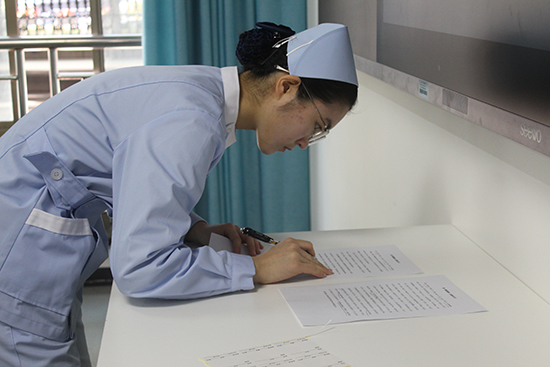 理论考场上,选手们沉着执笔,凭借扎实基础流畅作答,尽显对护理知识的熟练掌握。