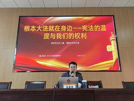 为扎实推进宪法宣传教育,增强学生法治意识,12月11日,浙江省湖州艺术与设计学校通过南太湖新区司法分局仁皇山司法所协调,邀请汉本律师事务所沈嘉贤律师来校开展普法讲座,旨在引导学生在理解法律的基础上,树立规则意识,守护自身权益。