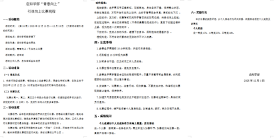 本次“青春向上”引体向上比赛,虽然已随昨日的夕阳画上圆满句号,但赛场上激荡的那种“不甘落后、勇于攀登”的精神,却深深烙印在每一位启知学子的心中。它超越了简单的体能较量,成为一堂生动的成长课:成功源于点滴积累,突破始于每一次尝试。