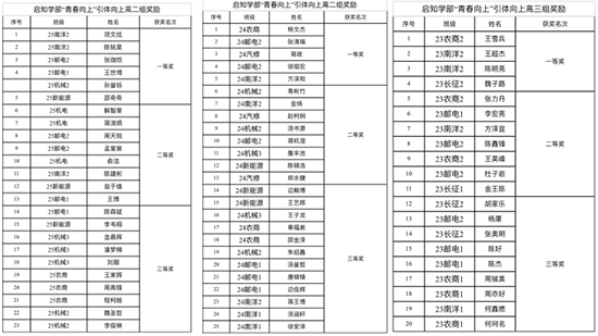 经过激烈角逐,本次比赛整个学部高一至高三年段最终产生了68名获奖选手,其中24农商杨文杰同学以一分钟36个引体向上创造了学部新纪录。这次的比赛中,68名获奖选手用他们的实力与精神,赢得了属于启知学部的荣耀。