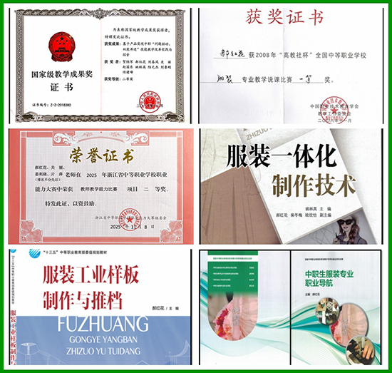 教育科研是她提升育人质量的引擎。她获奖发表多篇教改论文,主编参编《服装工业样板制作与推档》等5本部委级国家规划教材,主持参与十余项省级以上教科研项目,成功立项浙江省教师教学创新团队和省优质专业群,指导学生荣获省级及以上创业创新奖项二十余项。她的科研源自教学、反哺产业,形成“教学—科研—应用—推广”良性循环,让科研成果真正转化为生产力与育人实效。