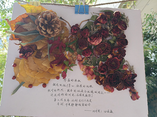——绍兴财经旅游学校“秋日情绪调色盘”举行树叶拼贴画活动