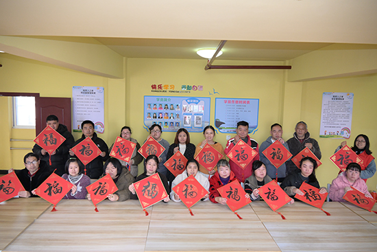 除了趣味十足的汤圆制作,活动还设置了送福环节。书法爱好志愿者现场书写福字,一幅幅笔力遒劲、寓意吉祥的福字,承载着对残疾朋友们的美好祝福,被一一送到大家手中。软糯的汤圆裹着温情,红火的福字载着祝福,让这个冬至前夕暖意知足。